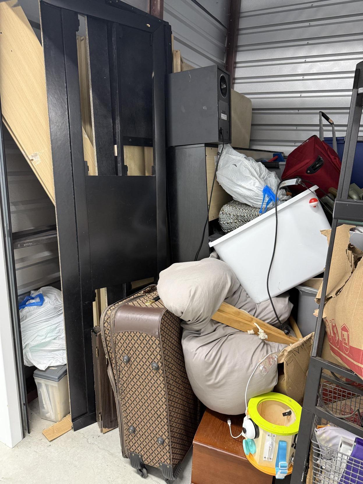 This unit appears to contain…Box Springs,Bed Frame,Dressers or Armoire,Nightstands,Chairs,Plastic Bags,Plastic Containers,Misc. Boxes,Clothing,Misc. Items,Suitcases,Toys